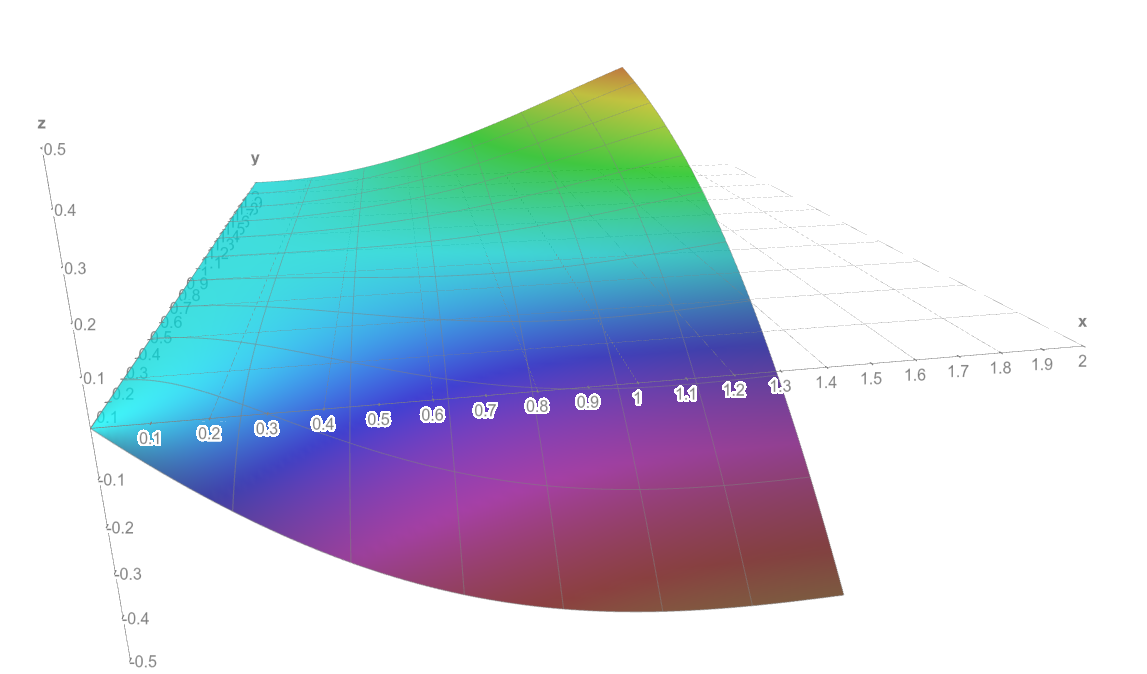 Here is a 3D plot with \(\alpha\) on the x axis and h on the y axis (\(r=1\)). Vertically is the amount of slack in total (top - side).
