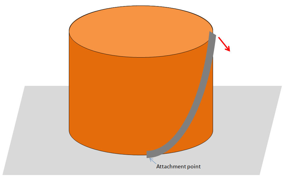 Say that you are pulling the top strap sideways so that it stays parallel to its initial position. As you pull, the top part of the cylinder will “produce” slack because a chord of the circle is always shorter than the diameter. In the same time, the side will “consume” slack because the strap is now oblique instead of vertical. Which one wins?