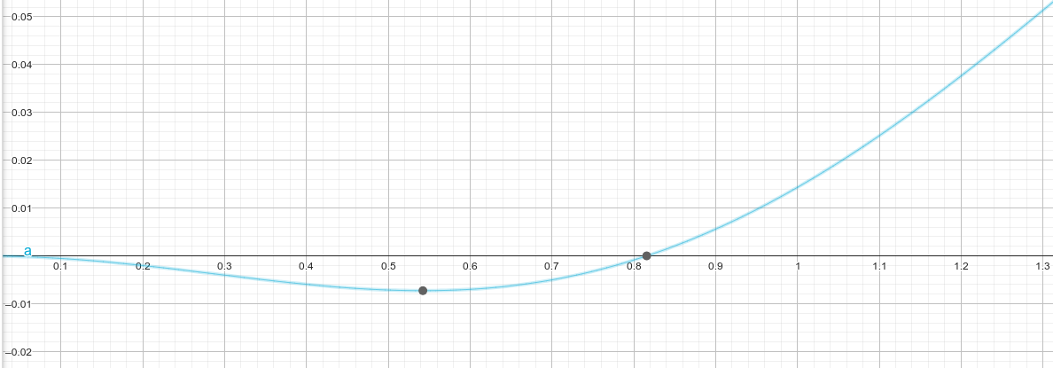 To see if \(\alpha=0\) is a point of minimum or maximum, we can compute the second derivative: \[ s''(\alpha) = \cos\left(x\right)-\dfrac{y^2}{\left(x^2+y^2\right)^\frac{3}{2}} \]