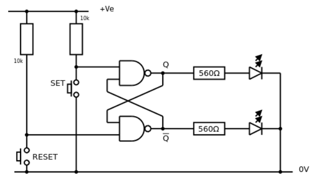 If I press briefly the SET button, the Q output will be set to 1 in a stable manner. Conversely, if I press briefly the RESET button, the Q output will be set to 0 in a stable manner.